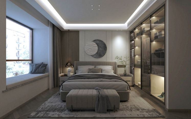設計櫥櫃燈時,建議採用超薄型設計並預留隱藏式凹槽,讓燈條深度埋入櫥櫃邊緣內部。這種「見光不見燈」的手法能避免直射光線造成的視覺刺眼,同時讓櫃體呈現出立體的光影層次。對於擁有大容量衣帽間的屋主來說,櫥櫃燈更是必備的功能性配置,能大幅提升空間的奢華感與實用性。