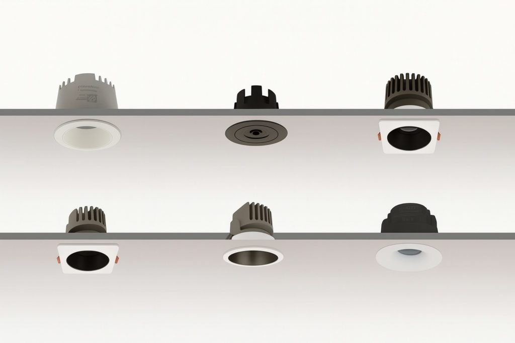 當來到中大坪數的空間,如客廳、餐廳或臥室時,設計師通常建議選擇直徑約 7.5 cm 至 12 cm 的中等尺寸崁燈。這類規格在視覺比例上最為和諧。值得注意的是,開孔尺寸大於 15 cm 的大尺寸崁燈在現代室內設計中已經較少被使用,因為過大的尺寸容易顯得笨重或過於搶眼,整體搭配起來在美觀上稍嫌突兀。現代設計師更傾向於數量優於尺寸的原則,也就是選擇適中尺寸的崁燈,並透過增加數量來達到充足且均勻的照明,而非依賴少數幾個龐大的燈具。