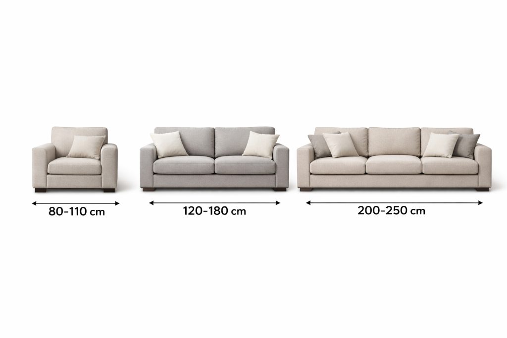 沙發通常是客廳中體積最大、視覺佔比最重的單品。挑選沙發的第一步是確認牆面的長度。一般而言,沙發的總長度建議為背靠牆面的 3/4左右,以免視覺過於擁擠。單人座沙發寬度約在 80 至 110 公分,適合閱讀與沉思;雙人座沙發寬度在 120 至 180 公分,是小坪數空間的首選;三人座沙發則建議在 200 至 250 公分之間。