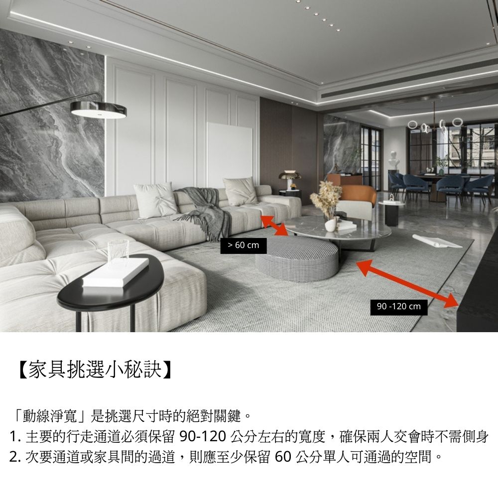 客廳是居家場域的靈魂,也是全家人聚會與接待親友的核心地帶。在進行室內設計時,客廳家具的尺寸選擇直接決定了空間的氣勢與生活的舒適度。設計師在規畫客廳時,不僅考量家具本身的長寬,更會精確計算家具與家具之間的「呼吸空間」。
