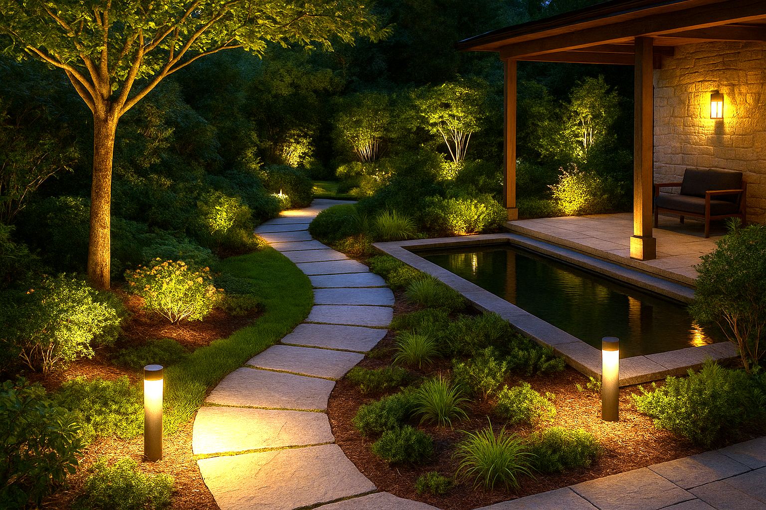 特色燈光設計不僅美化了景觀,也能幫助引導視線,增強庭園景觀空間的功能性。這些手法將照明藝術與功能完美結合,讓庭園在夜間煥發全新魅力。